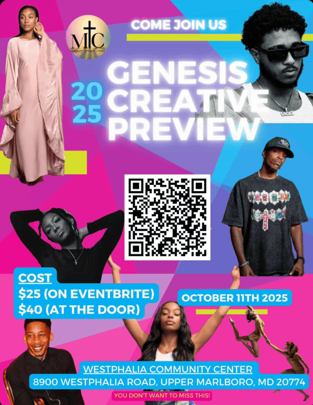 The Genesis Creative Preview is a faith-based showcase celebrating creativity for God’s glory. This inspiring event brings together models, dancers, actors, and artists who will share their gifts and testimonies through powerful performances.